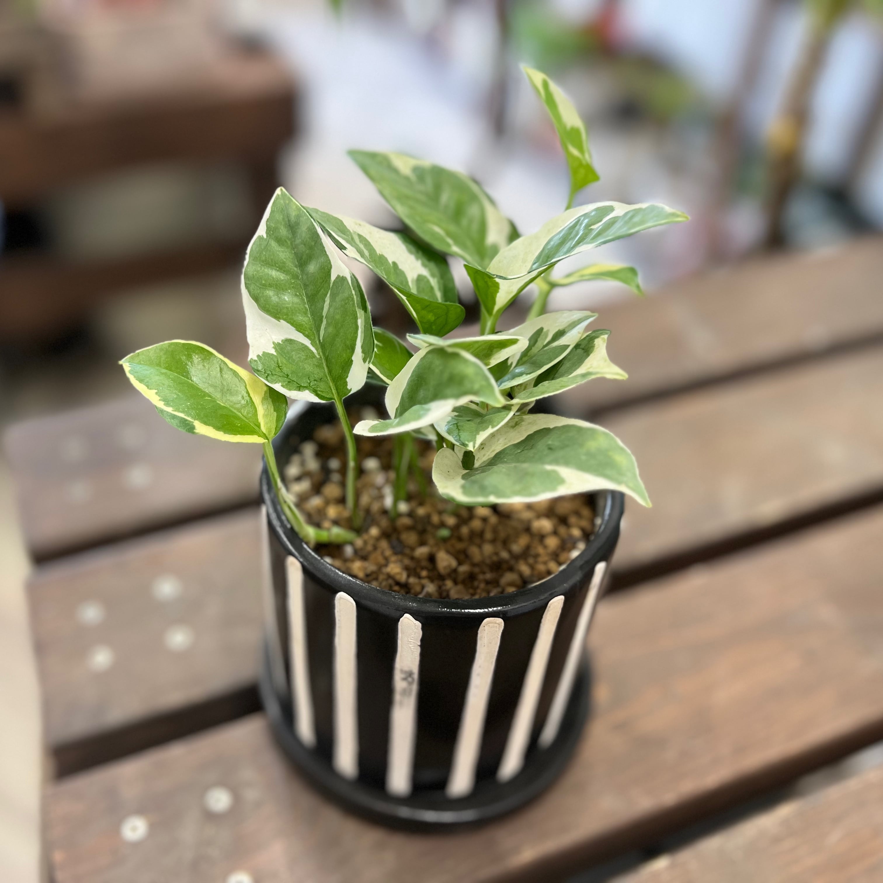 美しいストライプ柄の鉢で、ポトス・エンジョイをお楽しみください!