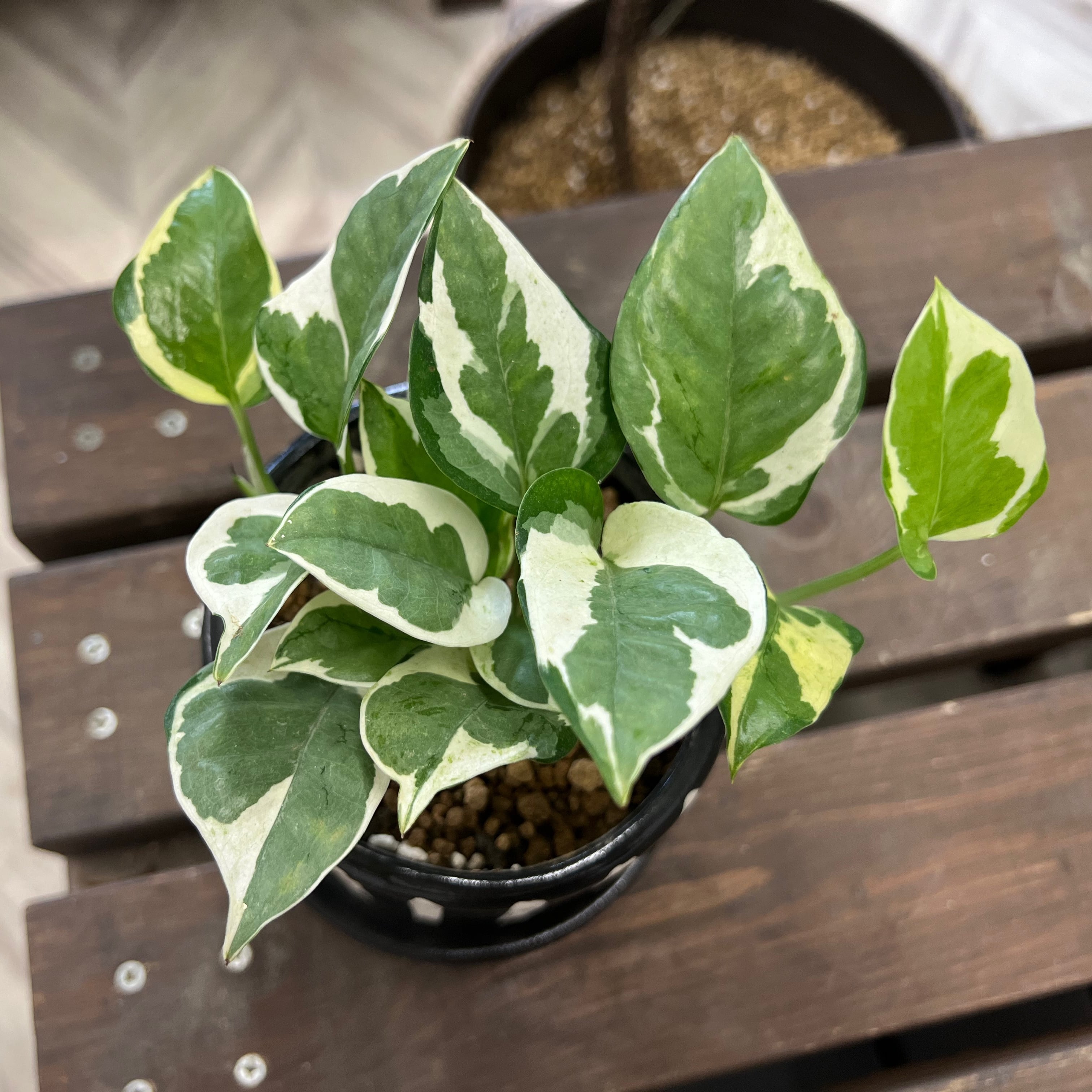 ポトス・エンジョイは、一枚一枚絵の具で描いたような美しい葉が特徴で、明るい雰囲気をお部屋に演出します。どの部屋にもぴったりな植物で、インテリアのアクセントに最適です。新しい芽が次々と出てくる様子も楽しめます。